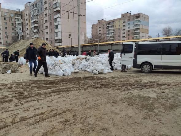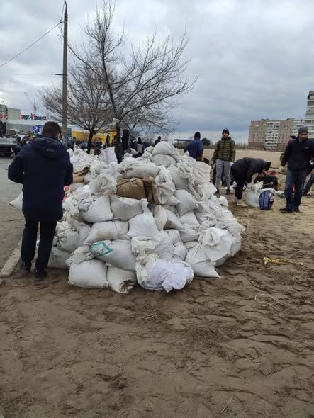 На наступний день на Пісках зібралися чоловіки з усіх районів, щоб допомагати вантажити пісок та робити укріплення, за три дні план було перевиконано. Жінки та діти плели сітки у школах та дитсадках. Запоріжці несли тони допомоги як військовим, так і переселенцям, які вже почали прибувати до міста.