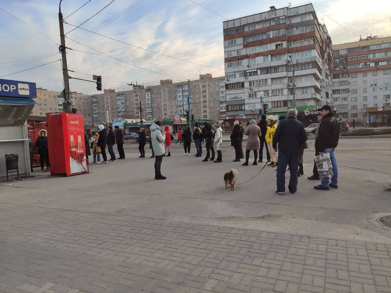 Вже за кілька хвилин зібралися кілометрові черги на АЗС та до банкоматів. Ближче до обіду розмели воду, хліб та інші продукти з полиць магазинів. Соцмережами ширилася така шалена кількість російських ІПСО, що сьогодні навіть складно уявити, як ми тоді у все це вірили: мітки на дахах та асфальті, світломаскування, "мені кума прислала...".