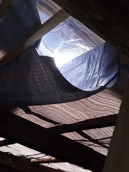 Після снігопадів і дощів наприкінці грудня та на початку січня тканина розійшлася, і вода почала проникати всередину будинку.