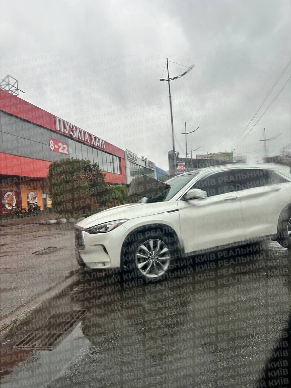 У столиці негода супроводжувалася сильною зливою, грозою, градом та шквальним вітром. У різних районах міста падали дерева, уламки фасадів і віконні рами. Один із фрагментів будівлі влетів у лобове скло припаркованого автомобіля. Через стихію також постраждав Каштан Іващенка - відоме дерево у центрі Києва, якому понад 150 років. У Вишгороді на Київщині поривами вітру зірвало дах будинку.