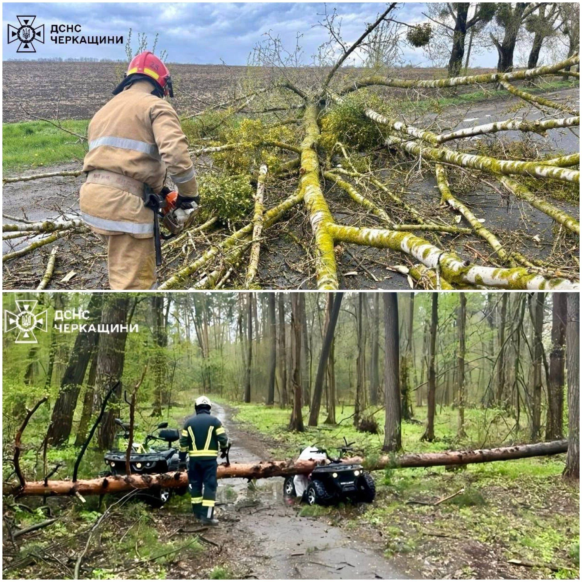 У Черкасах через падіння дерева загинула жінка. За попередніми даними, дерево впало на квадроцикл, яким вона рухалася дорогою. Рятувальники також прибирали повалені дерева, що ускладнювали рух транспорту.