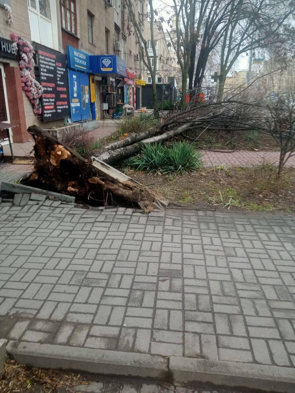 Зокрема, дерево вирвало на проспекті Соборному. Також дерево впало на зупинці «Автоколона».