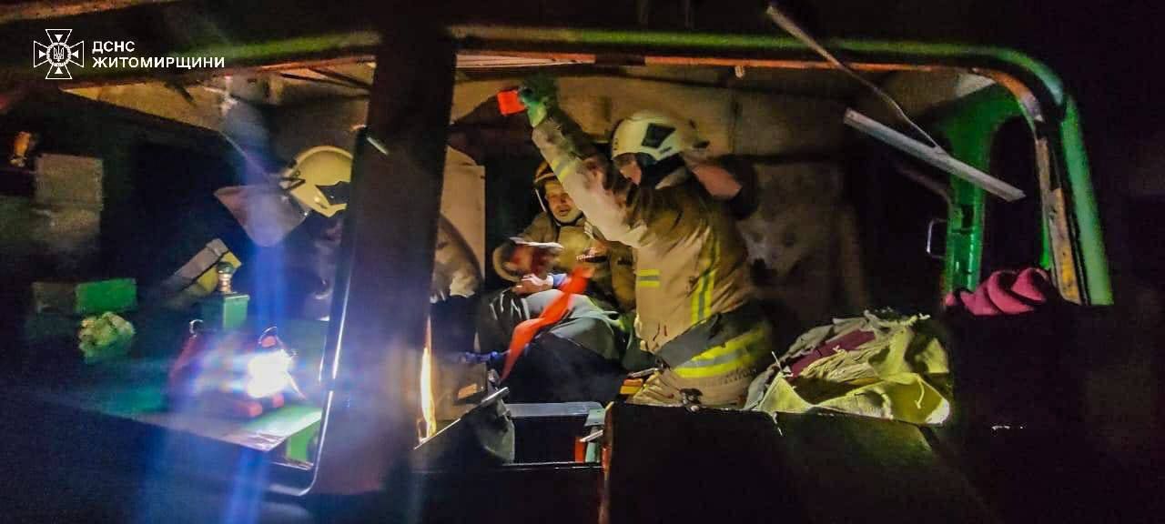 Поблизу міста Коростень на Житомирщині зафіксовано схід вантажного поїзда з колій. За попередніми даними, склад було уражено внаслідок детонації, ймовірно – безпілотника типу Shahed.
