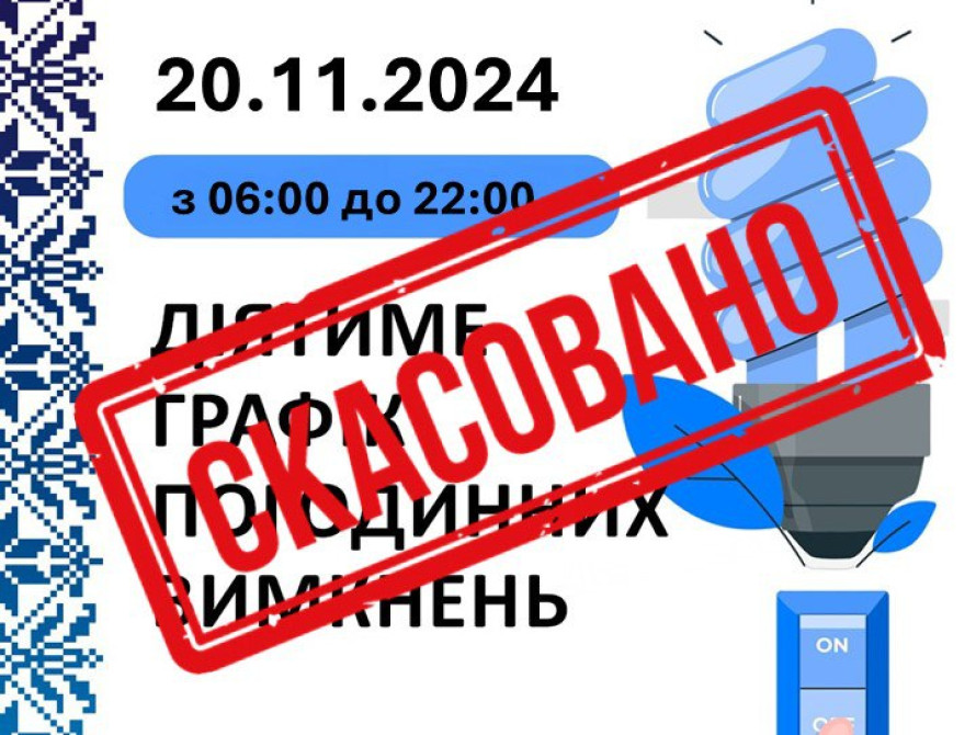 Графіки погодонних відключень, починаючи з 20 листопада, відміняються за вказівкою "Укренерго". Докладніше — "ЗаБор".