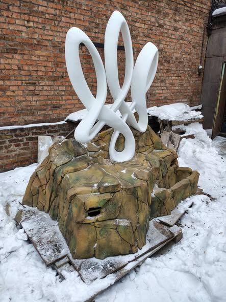 Скульптура біонічної форми виконана з архітектурного бетону.