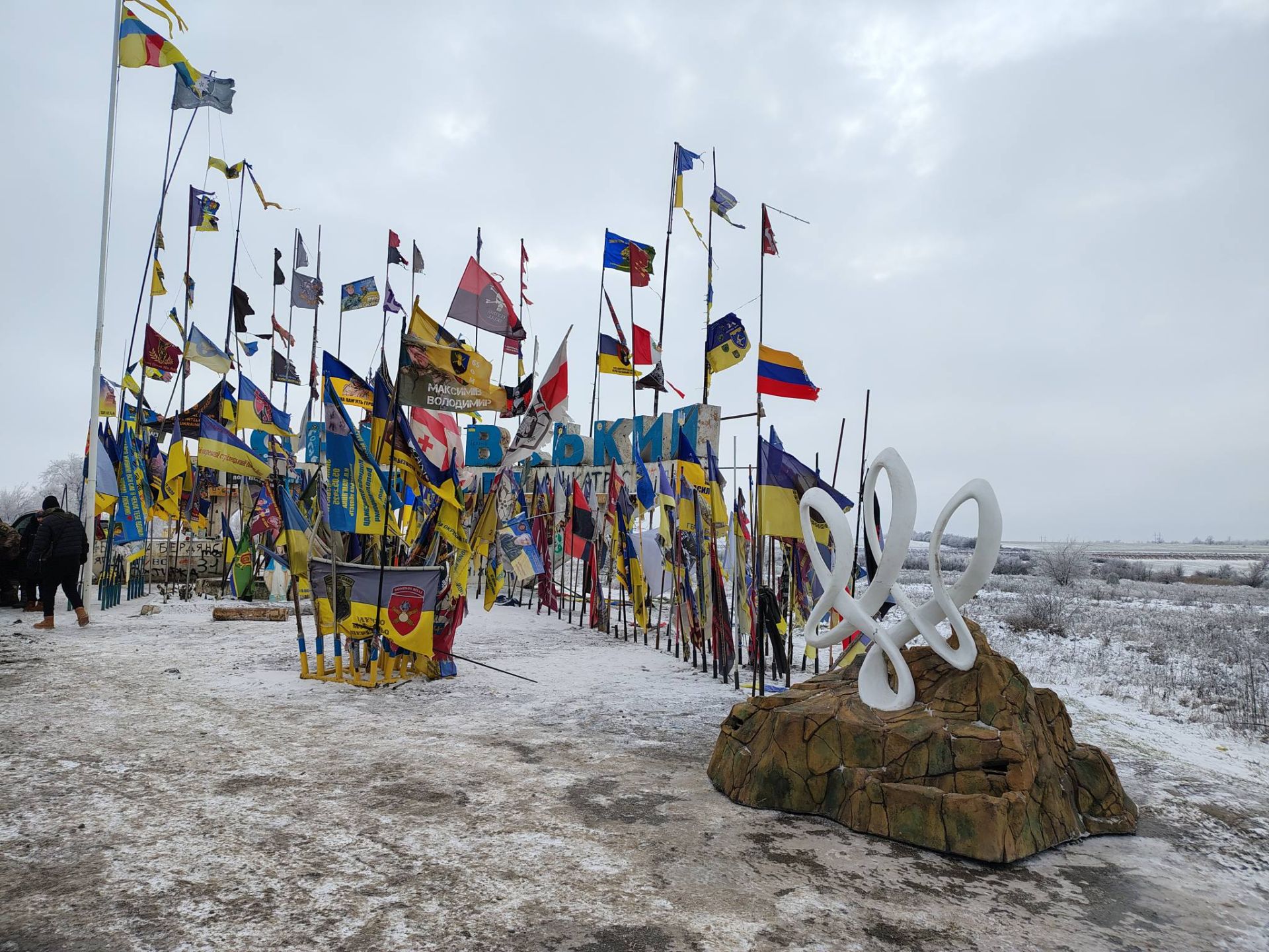 Скульптуру встановили біля стели на в’їзді до Оріхівського району – місця, яке з 2022 року є воротами до зони бойових дій. Саме тут військовослужбовці різних бригад та волонтери залишають прапори та згадки про поїздку сюди.