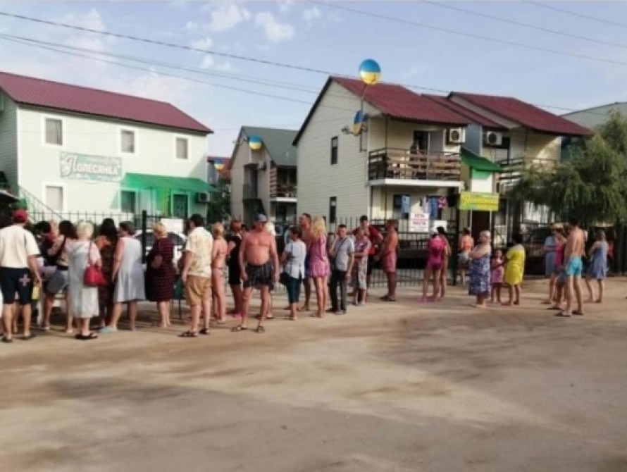 На одном из курортов Запорожской области туристы отстаивают длинные очереди в попытках купить свежую еду, передает "ZаБор".