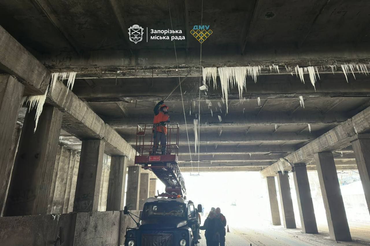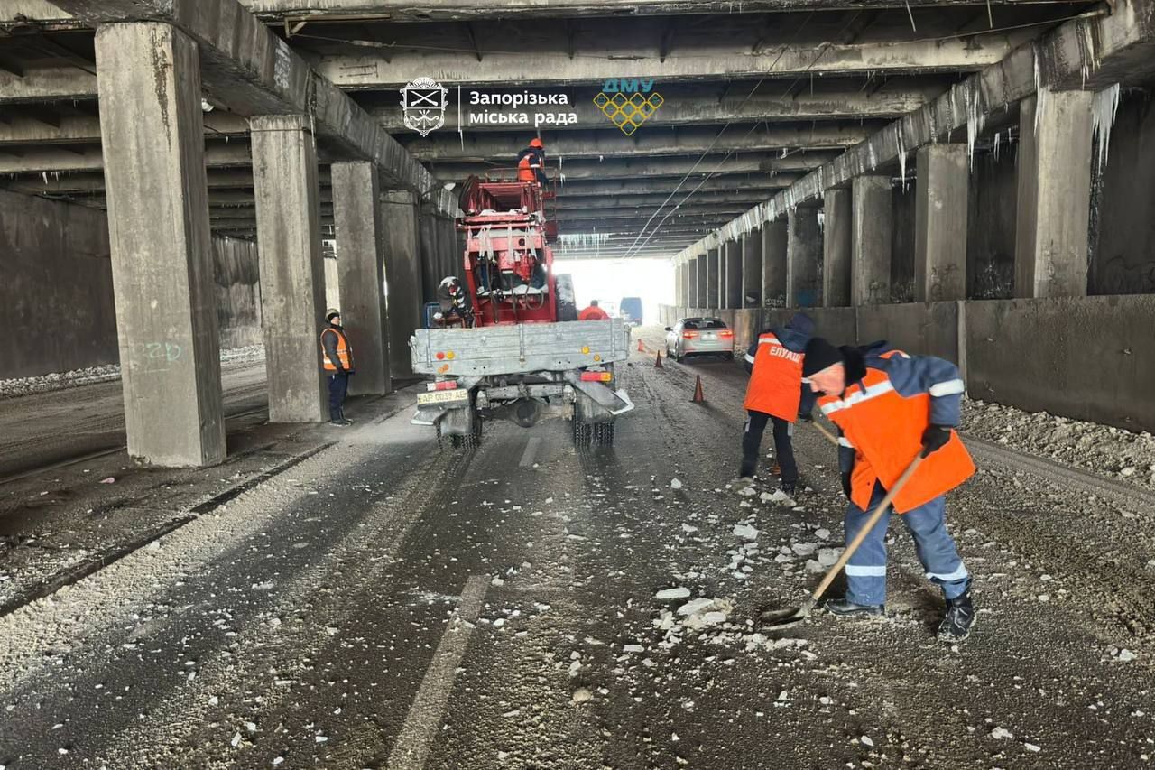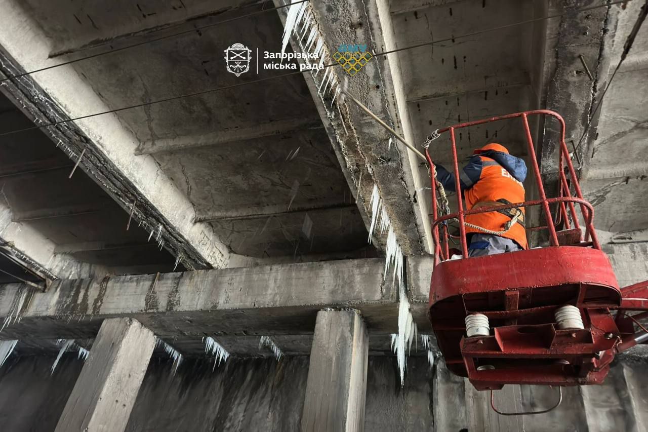 Крім того, вчора у Запоріжжі комунальні служби проводили роботи з ліквідації небезпечних бурульок. Зокрема, під мостом на вулиці Перемоги комунальники прибирали льодинки, які становили загрозу для пішоходів і транспорту.
