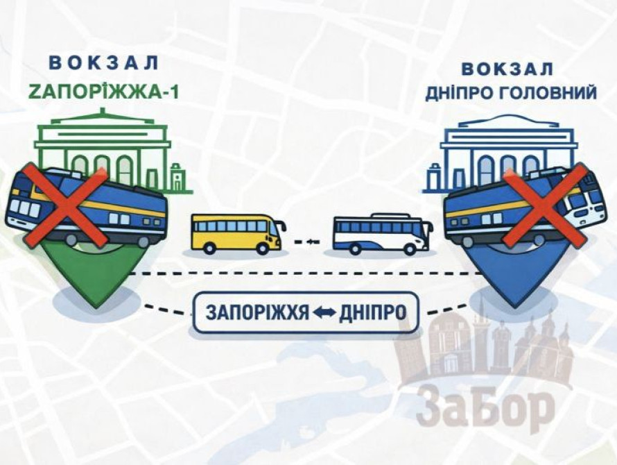 'Рух поїздів між Запоріжжям і Дніпром другу добу залишається обмеженим через атаки російських військ по залізничній інфраструктурі. Пасажирів перевозять автобусними трансферами. Водночас в Укрзалізниці поки не повідомляють терміни відновлення повноцінного сполучення. Детальніше - "ЗаБор".