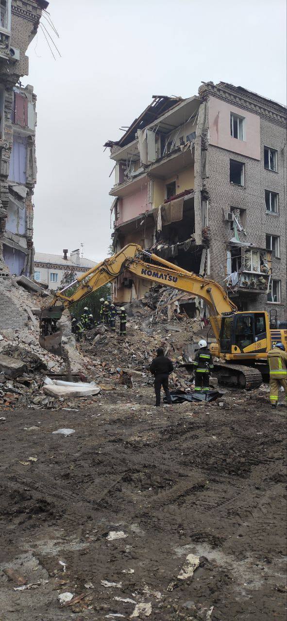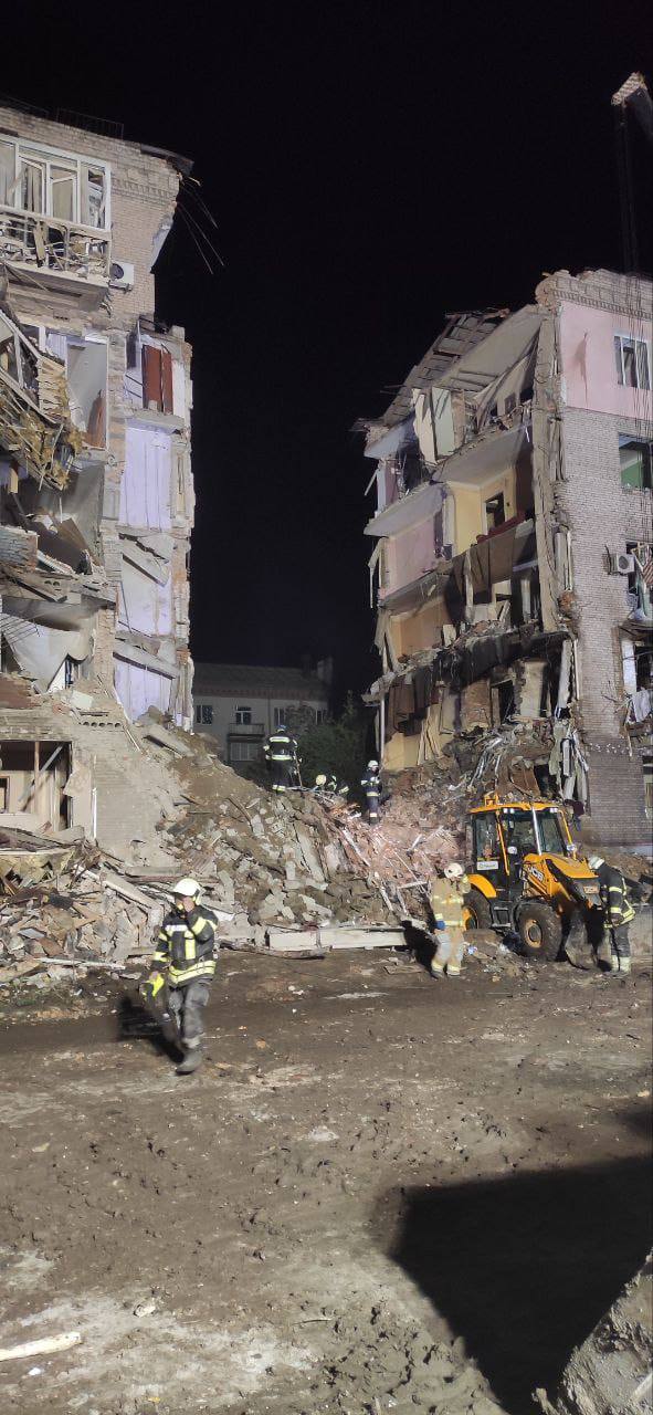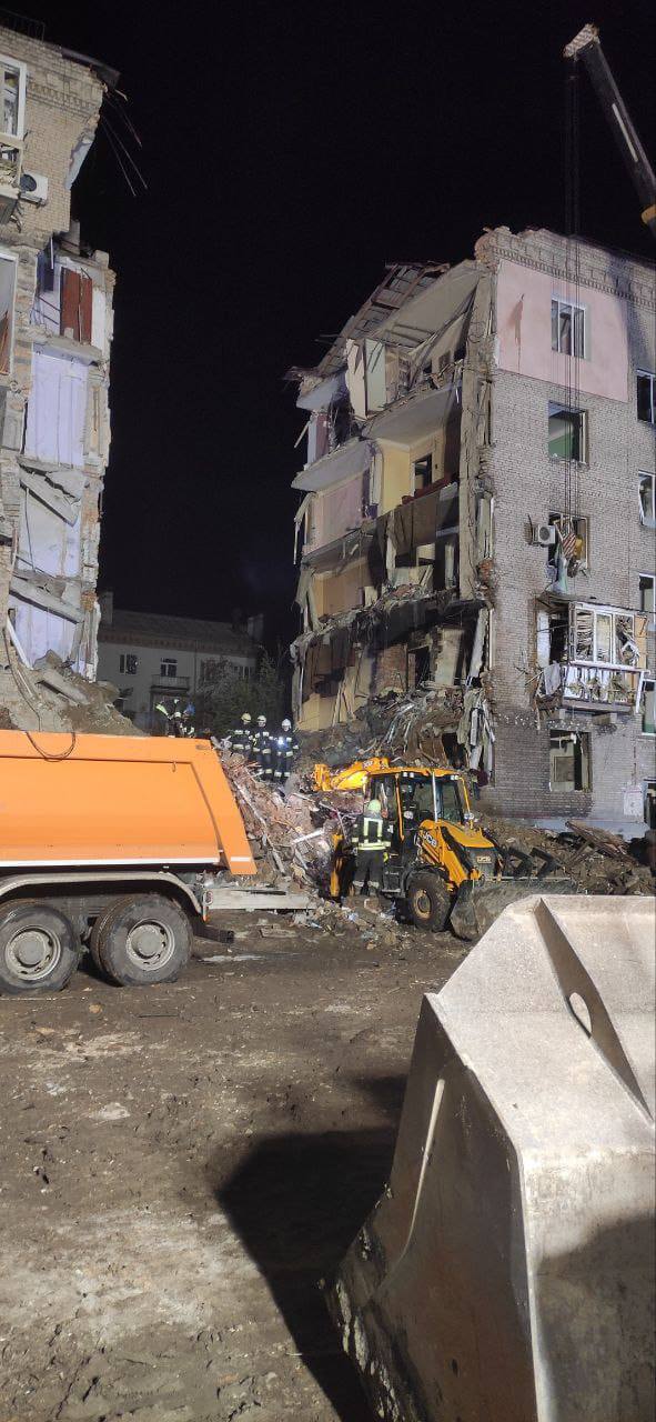 Рятувальники ДСНС та комунальники усю ніч, без перепочинку, розбирали завали біля багатоповерхового будинку, в який вчора влучила рашистська ракета. На місці також чергували працівники районної адміністрації, які надавали людям інформаційну допомогу, та волонтери з громадської організації «Белуга», які забезпечили мешканців будинку та співробітників ДСНС і комунальних служб харчуванням. На превеликий жаль, кількість загиблих від учорашнього удару збільшилася до п’яти. Цієї ночі рятувальники дістали з-під завалів ще трьох загиблих людей. Щирі співчуття рідним та близьким.