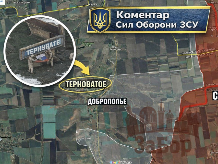 Водночас військовий оглядач Петренко повідомляє про реальні тактичні просування противника не в самому Тернуватому, а на суміжній ділянці фронту — на стику Запорізької та Дніпропетровської областей.