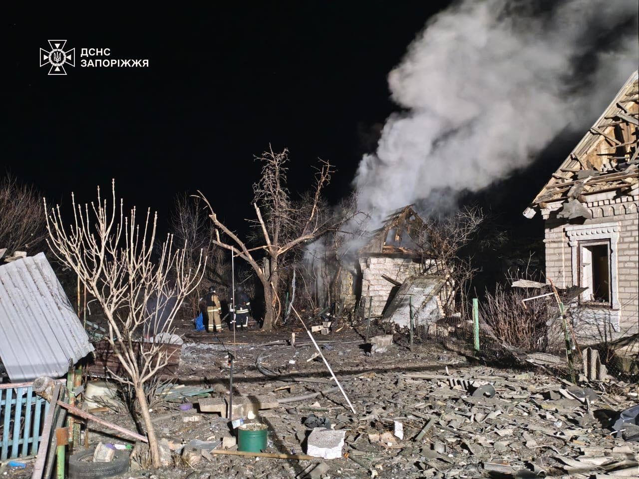 Російські війська вдарили по Вільнянську ударними дронами. Внаслідок обстрілу пошкоджені приватні житлові будинки та господарські споруди.