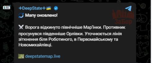 Аналітики з українського ресурсу DeepState сьогодні вночі повідомили, що лінія зіткнення в районі Роботиного в Запорізькій області наразі уточнюється.