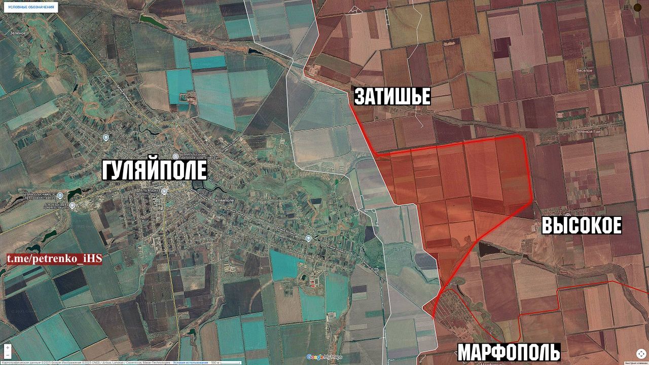 Військовий експерт Олег Петренко повідомив, що російські війська закрили “кишеню” західніше Високого та просунулися до Гуляйполя на 8,45 км². Він також зазначає, що густий туман сприяє підтягуванню ворожих сил і може посилити тиск.