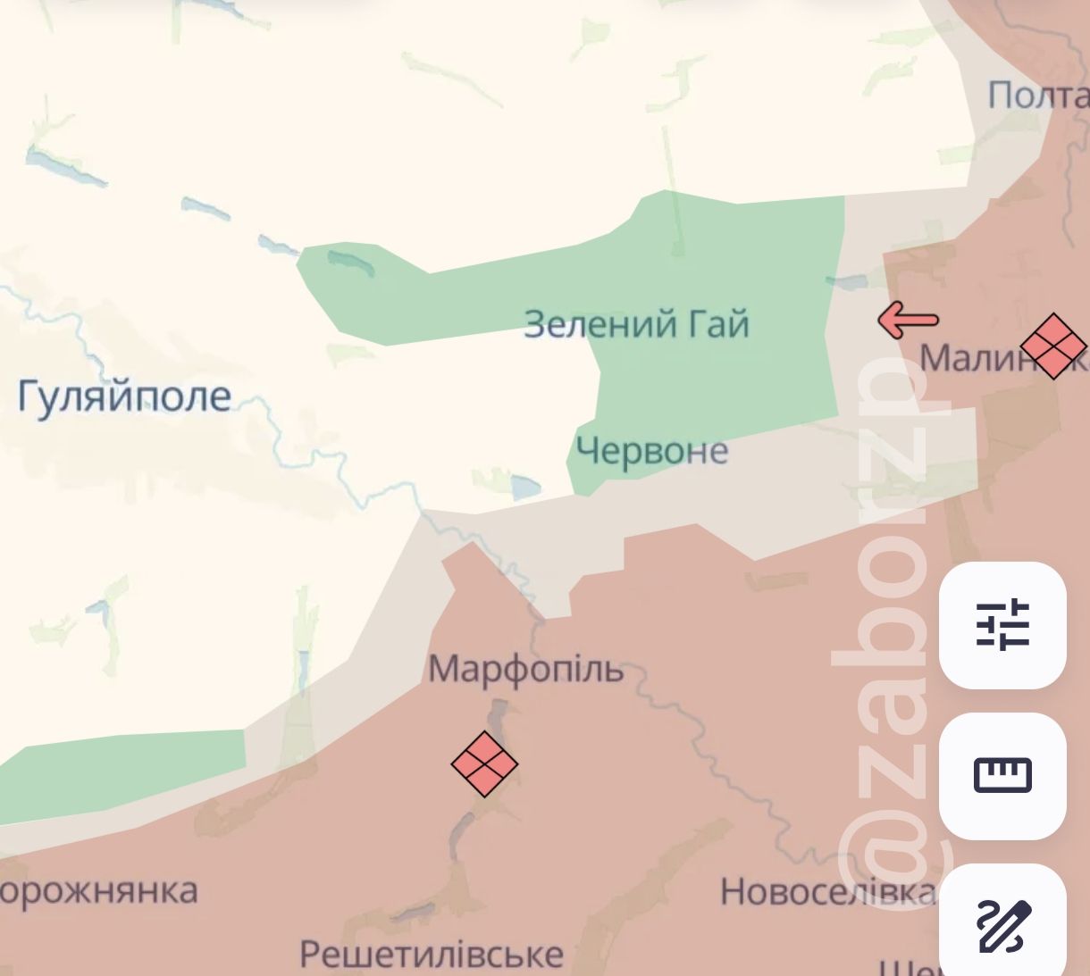 Разом із тим, аналітики проєкту DeepState повідомили, що росіяни просунулися на Запорізькому напрямку — ворог тисне в районі Малинівки. В також просувається поблизу Філії та Охотничого.