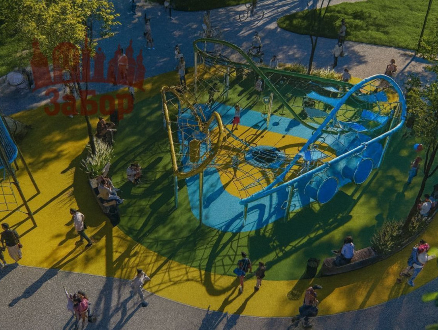 У парку встановлять дитячий майданчик з безпечним покриттям, батут, ігровий комплекс "Велике містечко" з гірками та переходами, сіткову конструкцію "Велика вежа", а також сучасні лавки та урни, малі архітектурні форми та нові металеві конструкції.