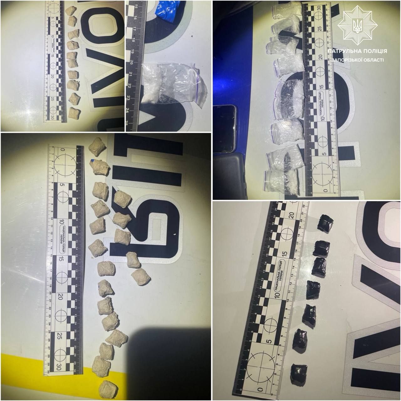 Надалі правоохоронці провели поверхневу перевірку. В одного з хлопців виявили 7 згортків із речовиною, ймовірно наркотичною, а також 5 згортків, зафіксованих на фотографіях у мобільному телефоні, які, за його словами, він уже встиг розкласти. В іншого інспектори знайшли 29 згортків із речовиною, схожою на наркотичну, та ще 5 – раніше розкладених.