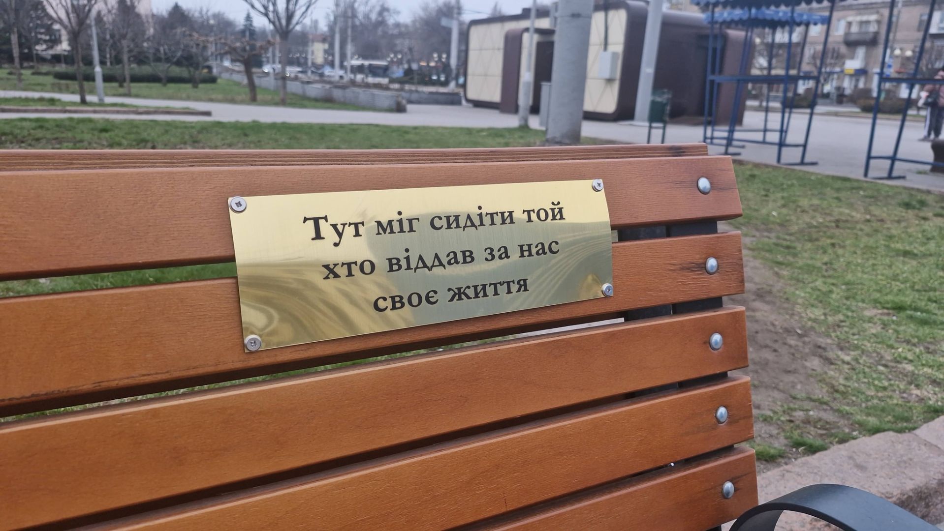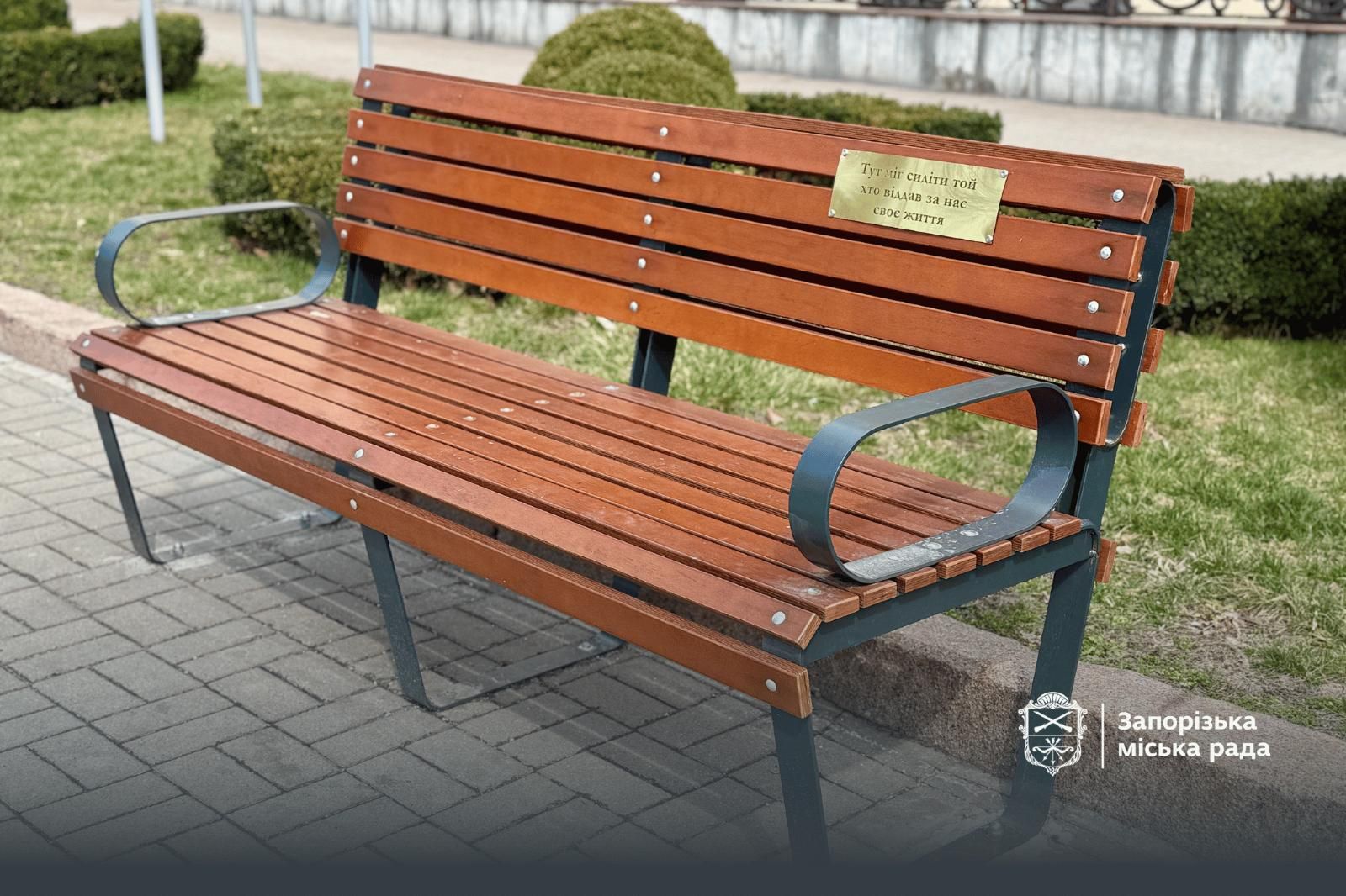 Пам'ятна табличка на лавці у Запоріжжі