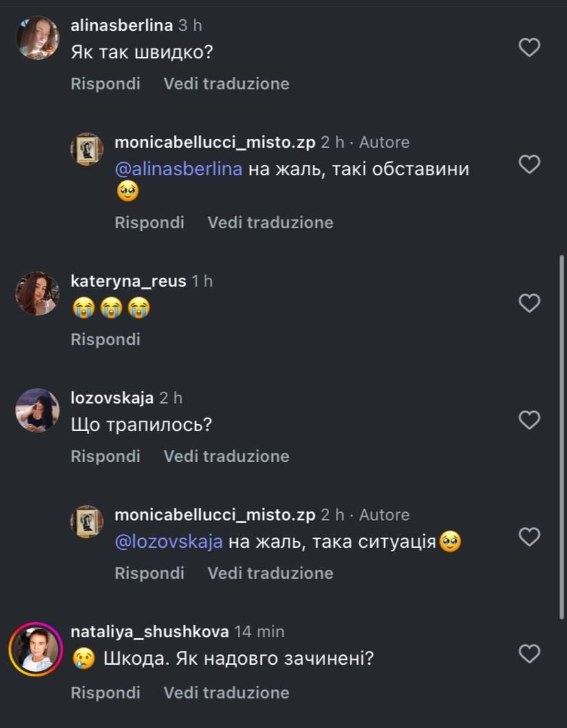 На бульварі Шевченка у Запоріжжі припинив роботу ресторан Monica Bellucci, який проіснував менше пів року. Заклад відкрився у лютому 2025, однак у липні на офіційній сторінці повідомили, що його зачинено. Детальніше – "ЗаБор".