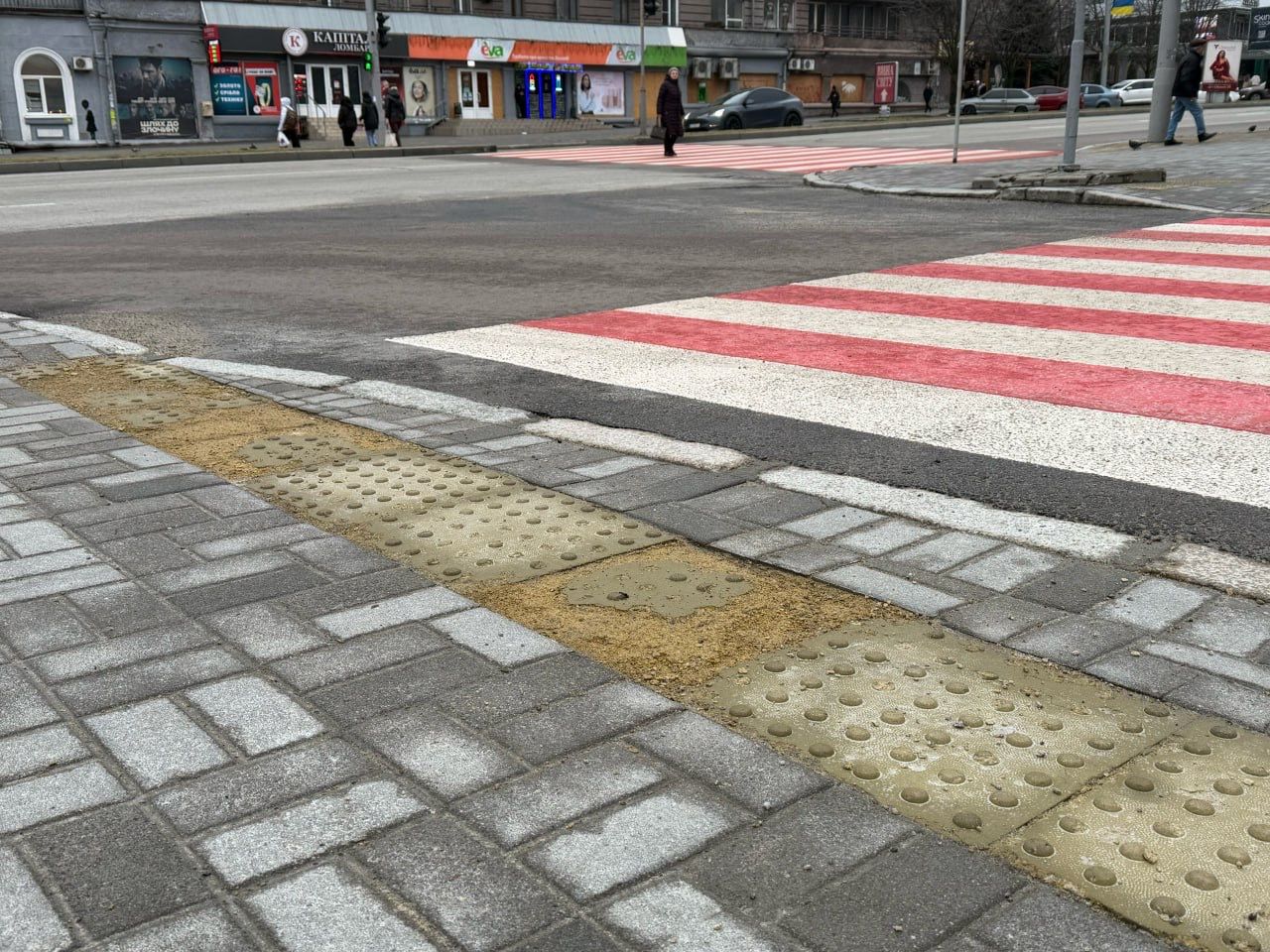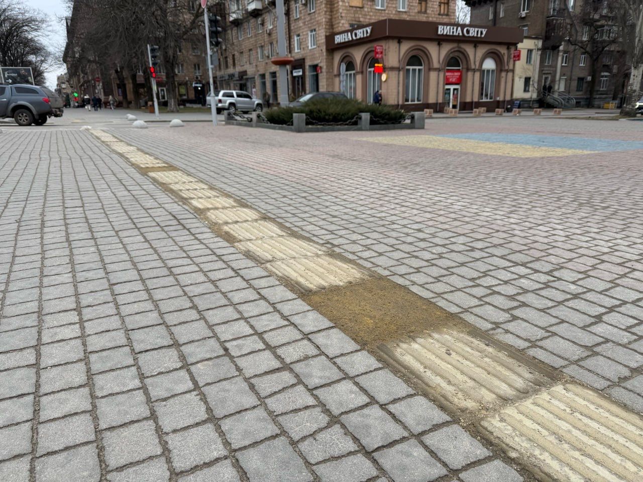 Зруйнована тактильна плитка у центрі Запоріжжя