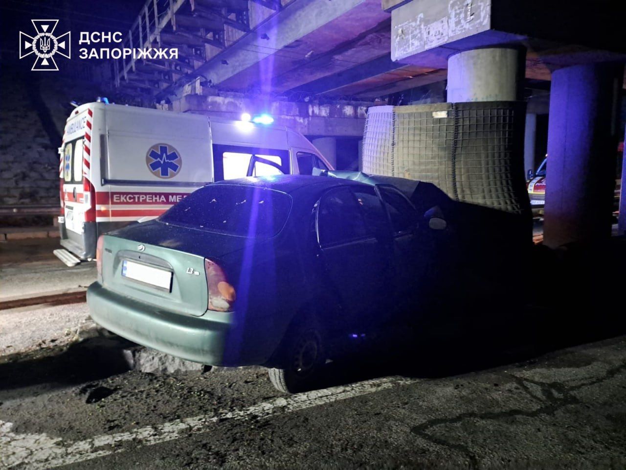 Вночі 22 квітня в одному з районів Запоріжжя сталася ДТП. Водій «Ланоса» врізався у бетонну опору мосту. Чоловіка затисло в авто, його деблокували рятувальники. Детальніше – "ЗаБор".