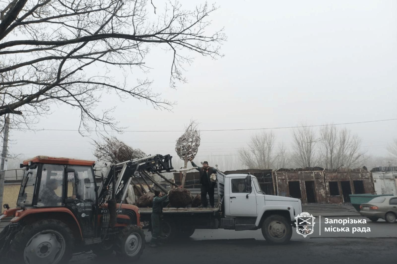 У роботах задіяли вісім працівників КРБП «Зеленбуд», вантажівку для транспортування дерев та трактор-автонавантажувач.