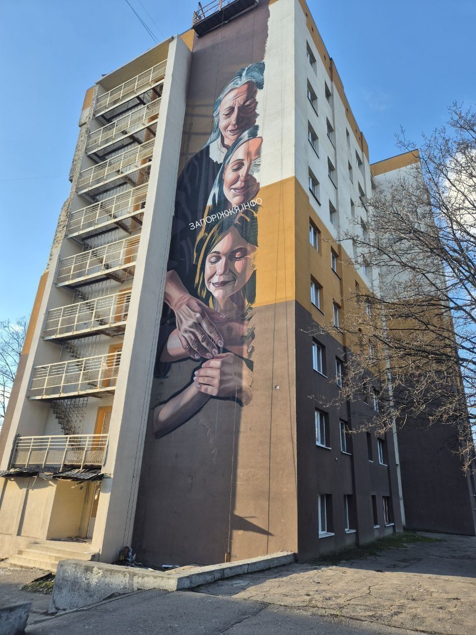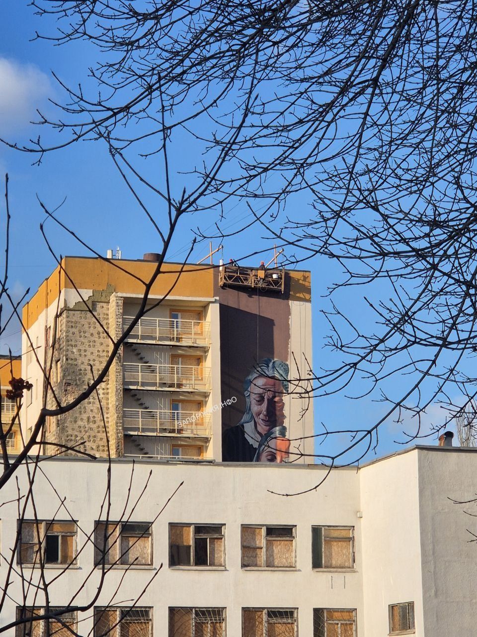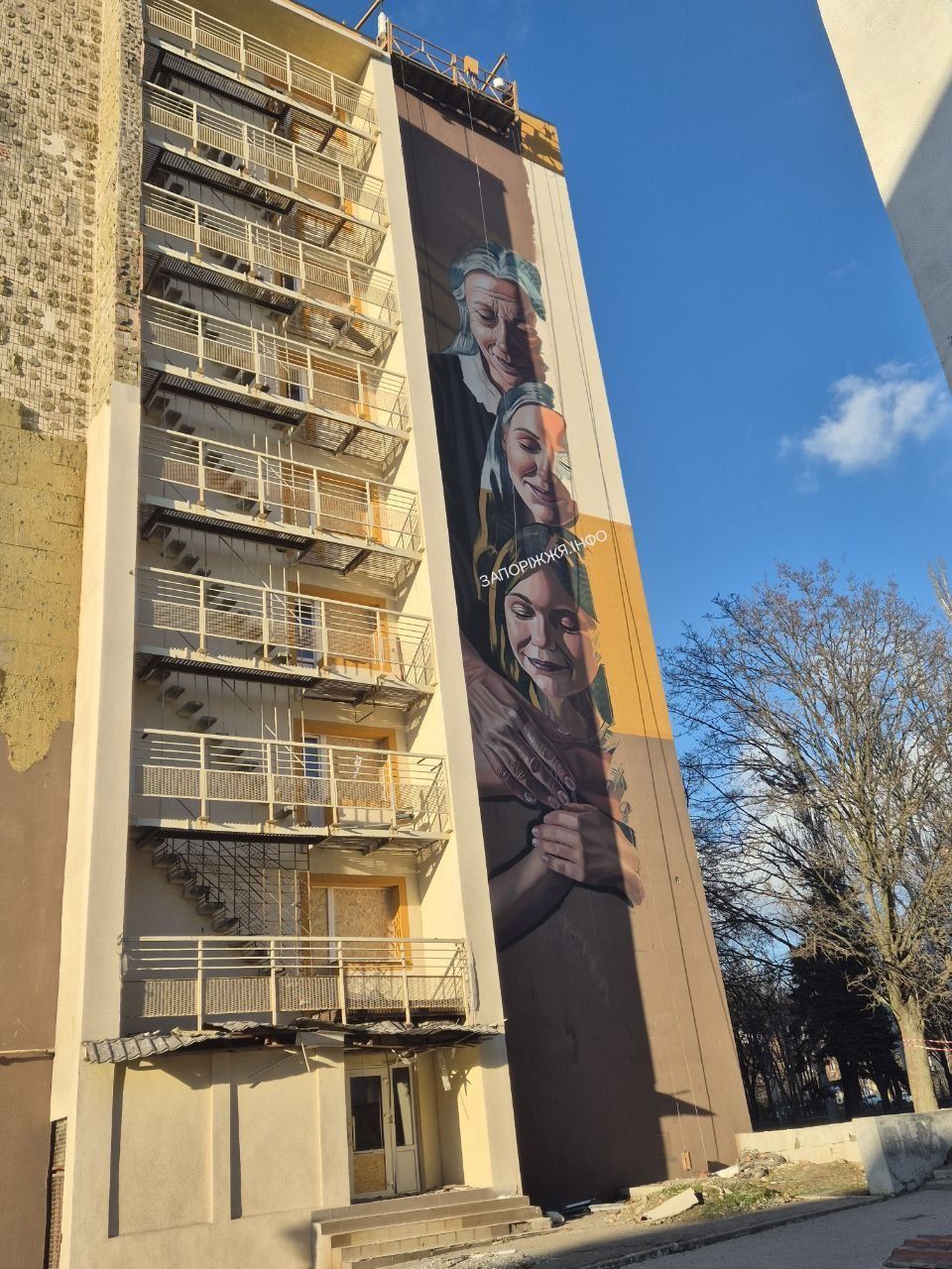 На фасаді запорізького гуртожитку, який постраждав внаслідок російського удару, з’явиться мурал. Композиція готова майже наполовину. Детальніше – "ЗаБор".