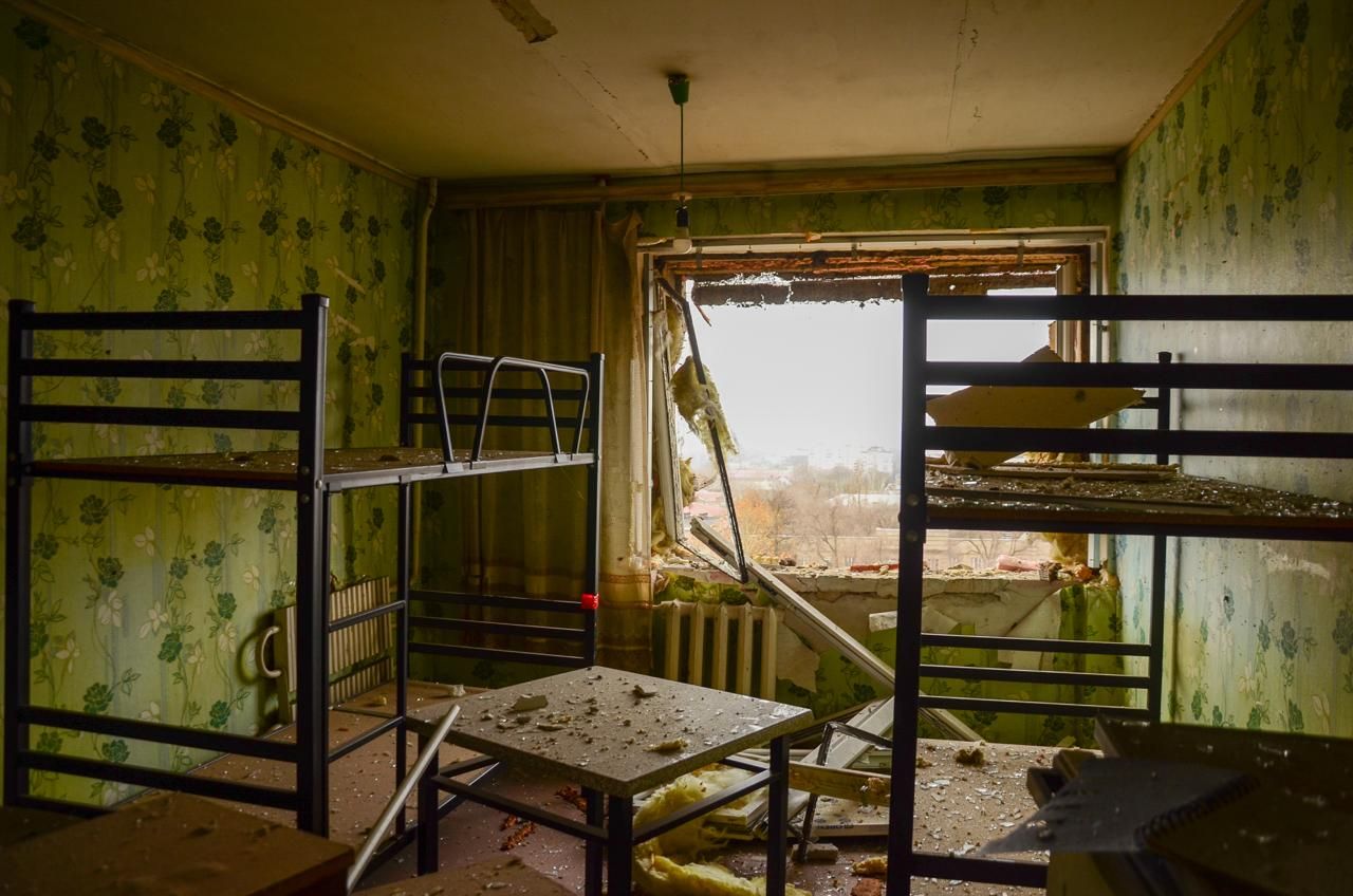 Близько 22:00 25 листопада пряме влучання прийшлося у кутову частину гуртожитку №3 ЗНУ. Вибухова хвиля пошкодила стіну будівлі, вибила частину вікон, а також близько 30% вікон навчального корпусу №2. Ушкоджено приміщення їдальні «Тетянин день» та четвертого гуртожитку.