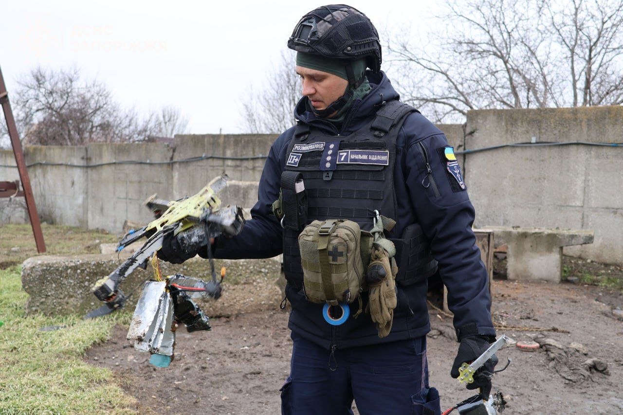 Сьогодні працівники підприємства у Запоріжжі помітили підозрілий предмет та одразу повідомили відповідні служби. На місце прибули фахівці ДСНС, які встановили, що знахідка є уламками ворожого дрону.