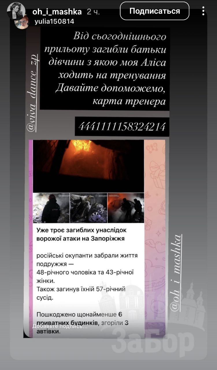 ННагадаємо, що вчора ввечері росіяни завдали удару по Запоріжжю дронами. Загинули троє людей, зокрема подружжя та їхній сусід. У загиблих запоріжців лишилася донька.