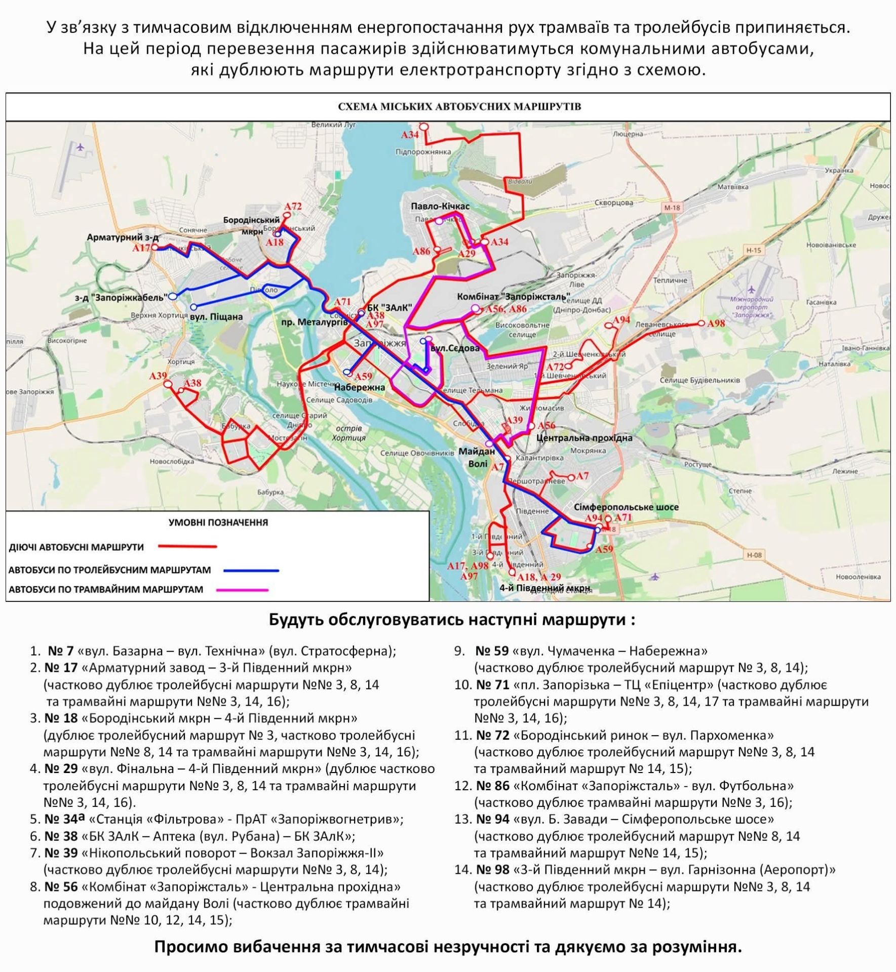 У «Запоріжелектротрансі» зазначили, що така схема дозволить забезпечити транспортне сполучення навіть у періоди, коли електротранспорт не може працювати через відсутність живлення.