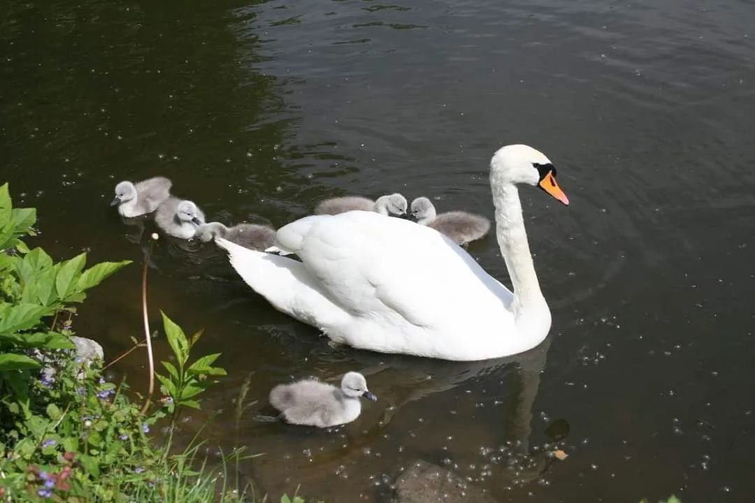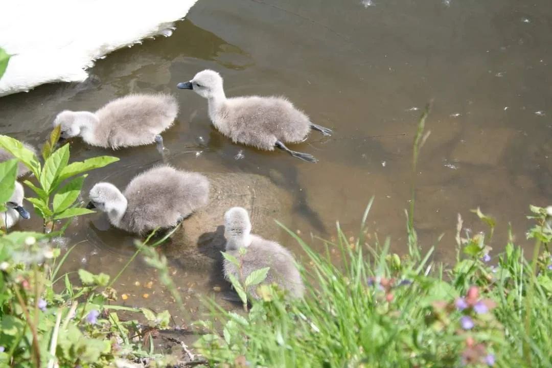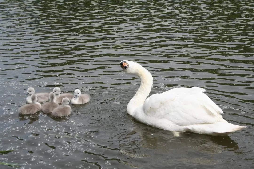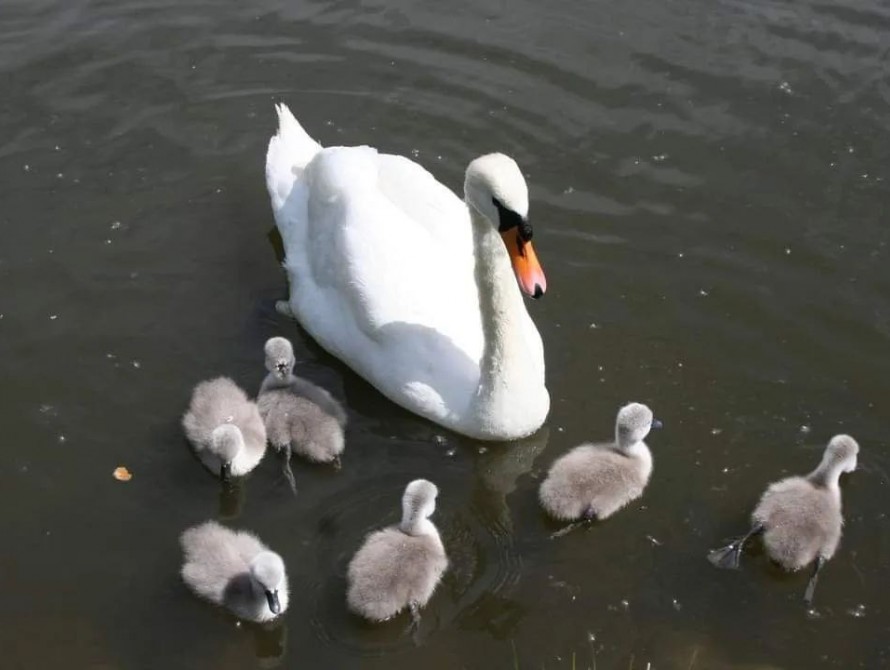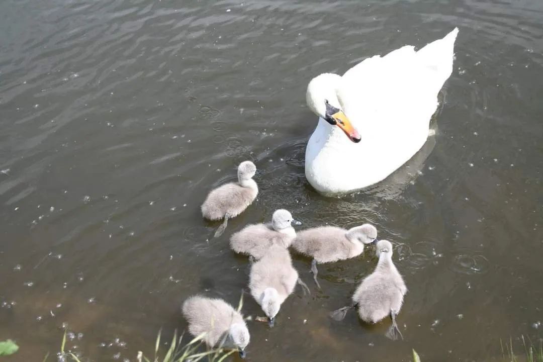 Птенцы лебедей еще не очень похожи на своих грациозных родителей, однако выглядят, как милые малые пушистики и радуют глаз посетителей парка. Возле них постоянно собираются люди, чтобы сделать фото.