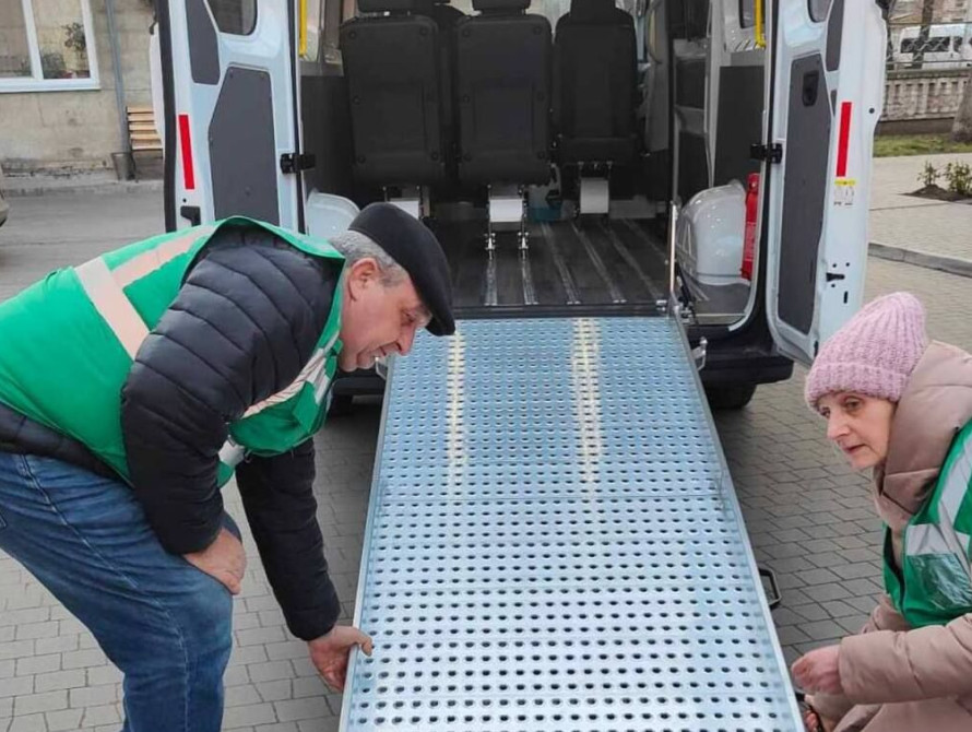 Надання цієї послуги здійснюється спеціально облаштованим автотранспортом – мікроавтобусом з автоматичним пандусом.