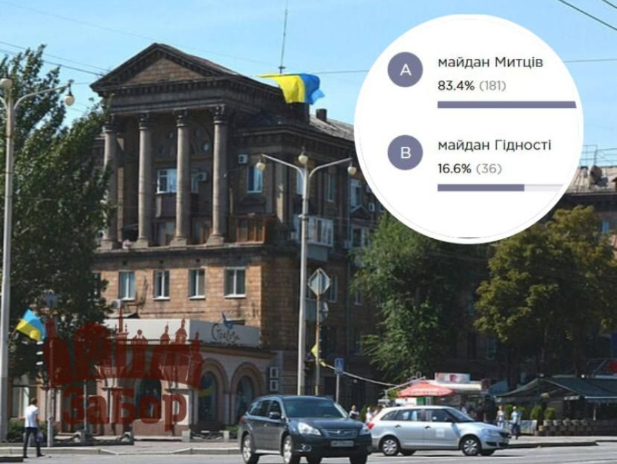 Нагадуємо, голосування про перейменування площі Маяковського тривало з 24 червня, участь у ньому взяли 217 жителів міста. Більшість (181 учасник) віддали свої голоси за назву «майдан Митців». Інший варіант – «майдан Гідності», підтримали 36 людей.