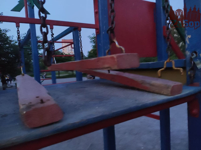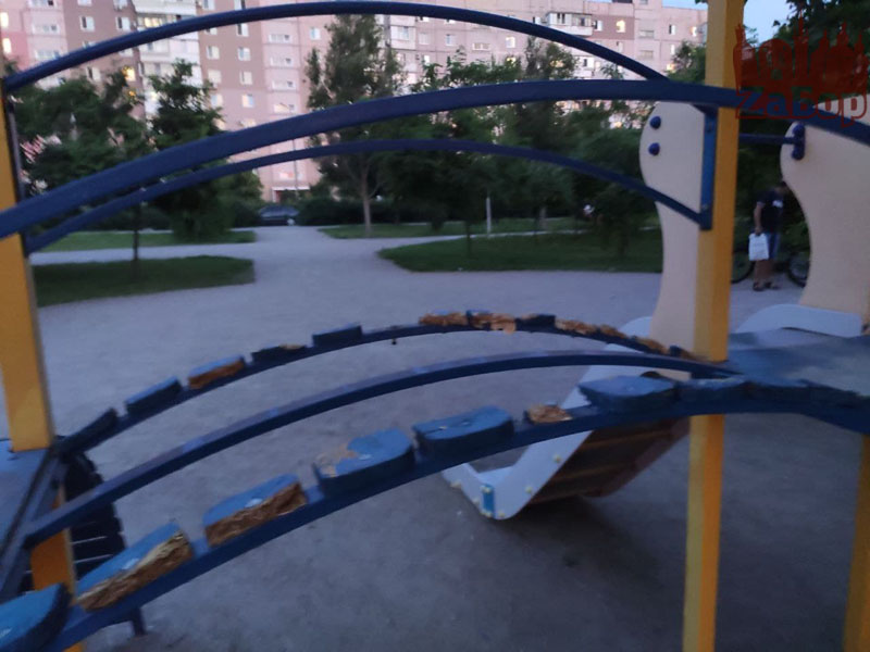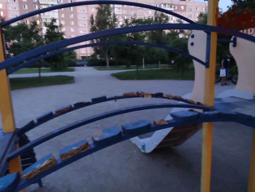 В Южном микрорайоне Запорожья недавно отремонтировали детскую площадку. Сейчас она начала разваливаться, передает "ZаБор".