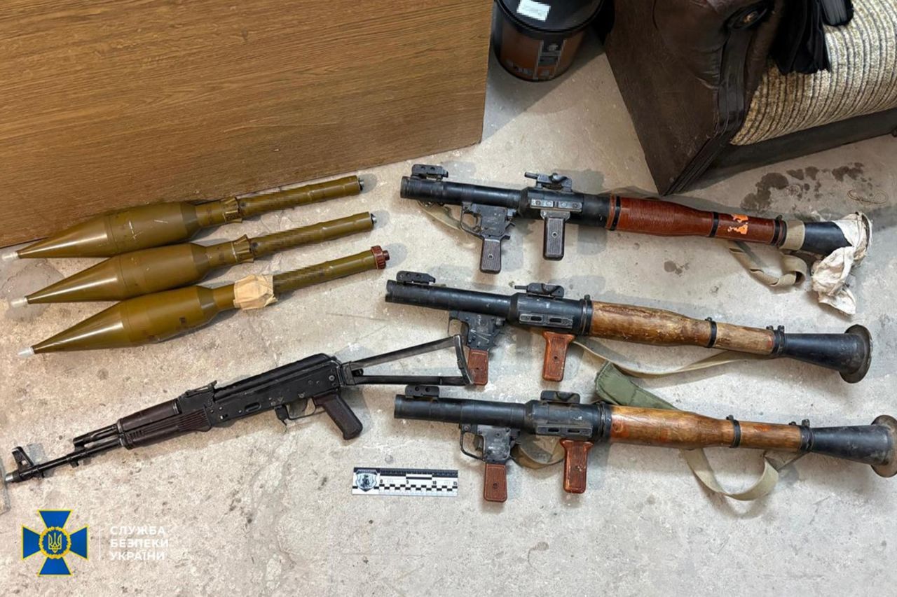 У затриманого вилучили два автомати АК-74, три ручні гранатомети РПГ-7, три постріли до гранатомета, ручну осколкову гранату та набої.