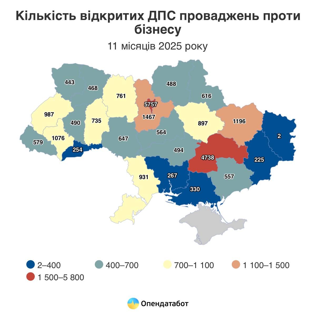 У Запорізькій області за січень–листопад 2025 року Державна податкова служба відкрила 557 виконавчих проваджень проти бізнесу. Загалом по Україні за цей період податкова ініціювала 25 035 проваджень, що на 35% більше, ніж до початку повномасштабного вторгнення, хоча на 1,7% менше, ніж торік.