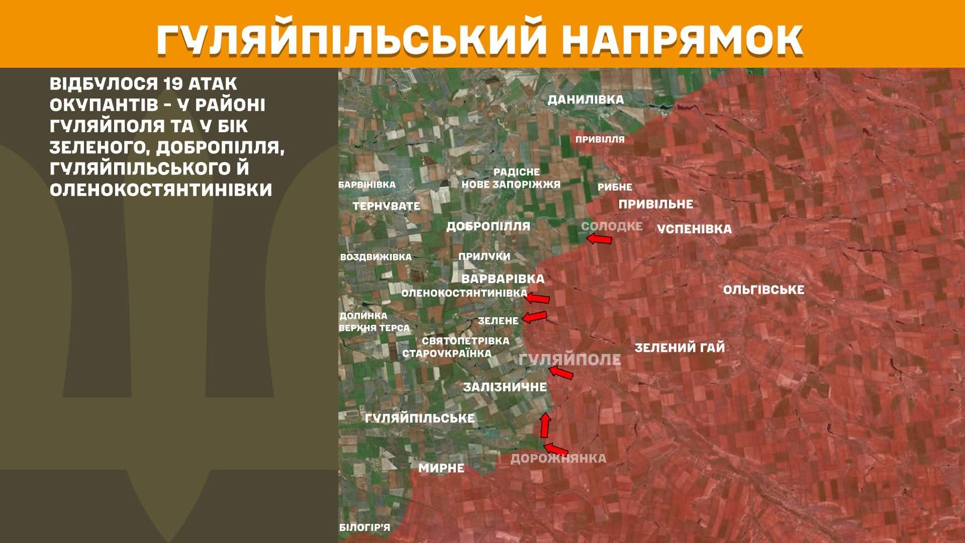 Відбулося 19 атак у районі Гуляйполя та у напрямках: