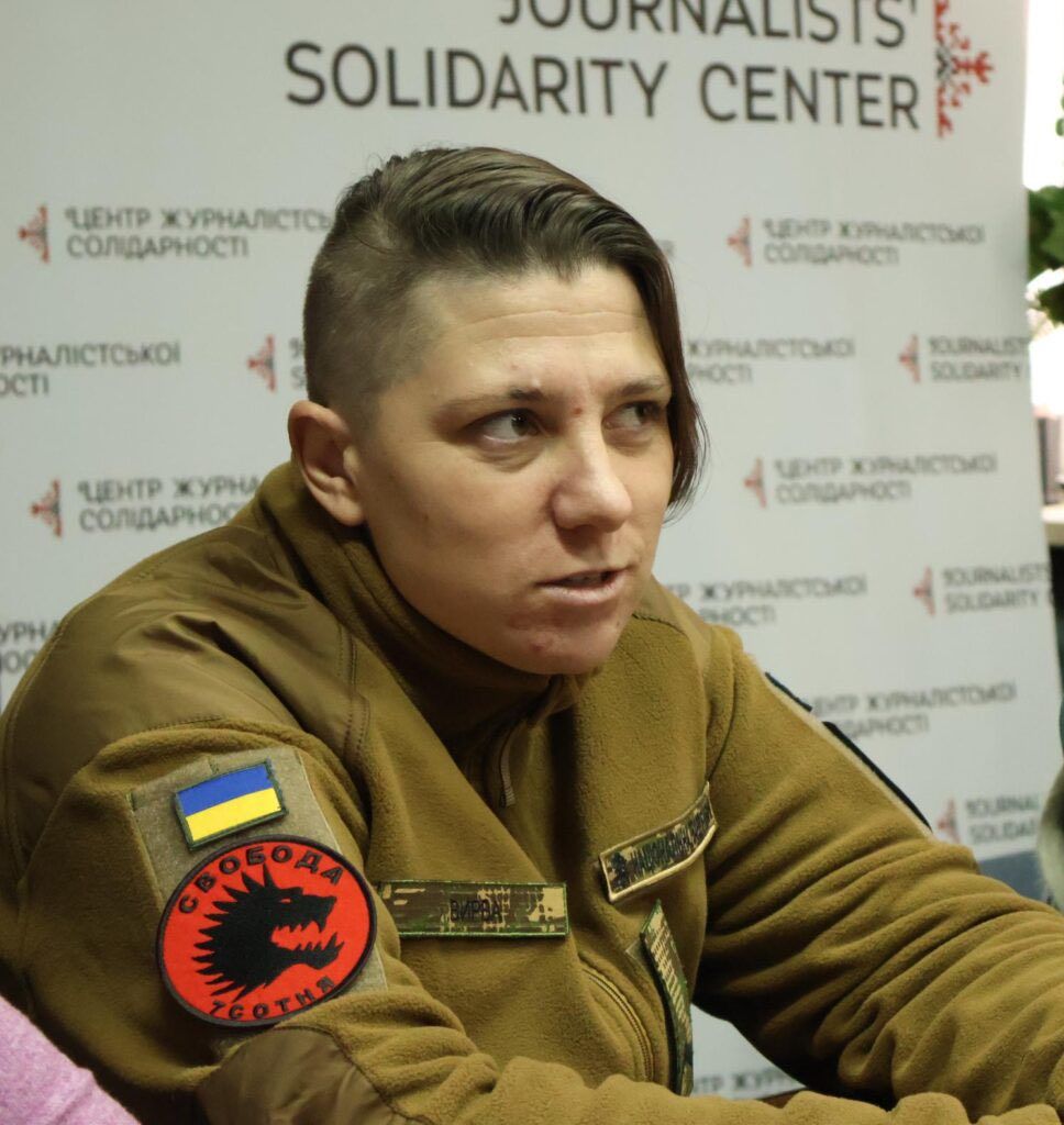 Позивний «Вирва» вона обрала через фронтові воронки від ворожих прильотів, а також на честь урочища Вирва в Запоріжжі, яке називає одним із найкрасивіших місць міста.