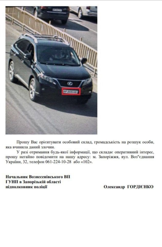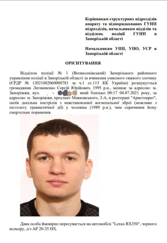 Тогда Запорожская полиция опубликовала ориентировку на подозреваемого в убийстве Литвиненко Сергей Юрьевич 1995 года рождения.