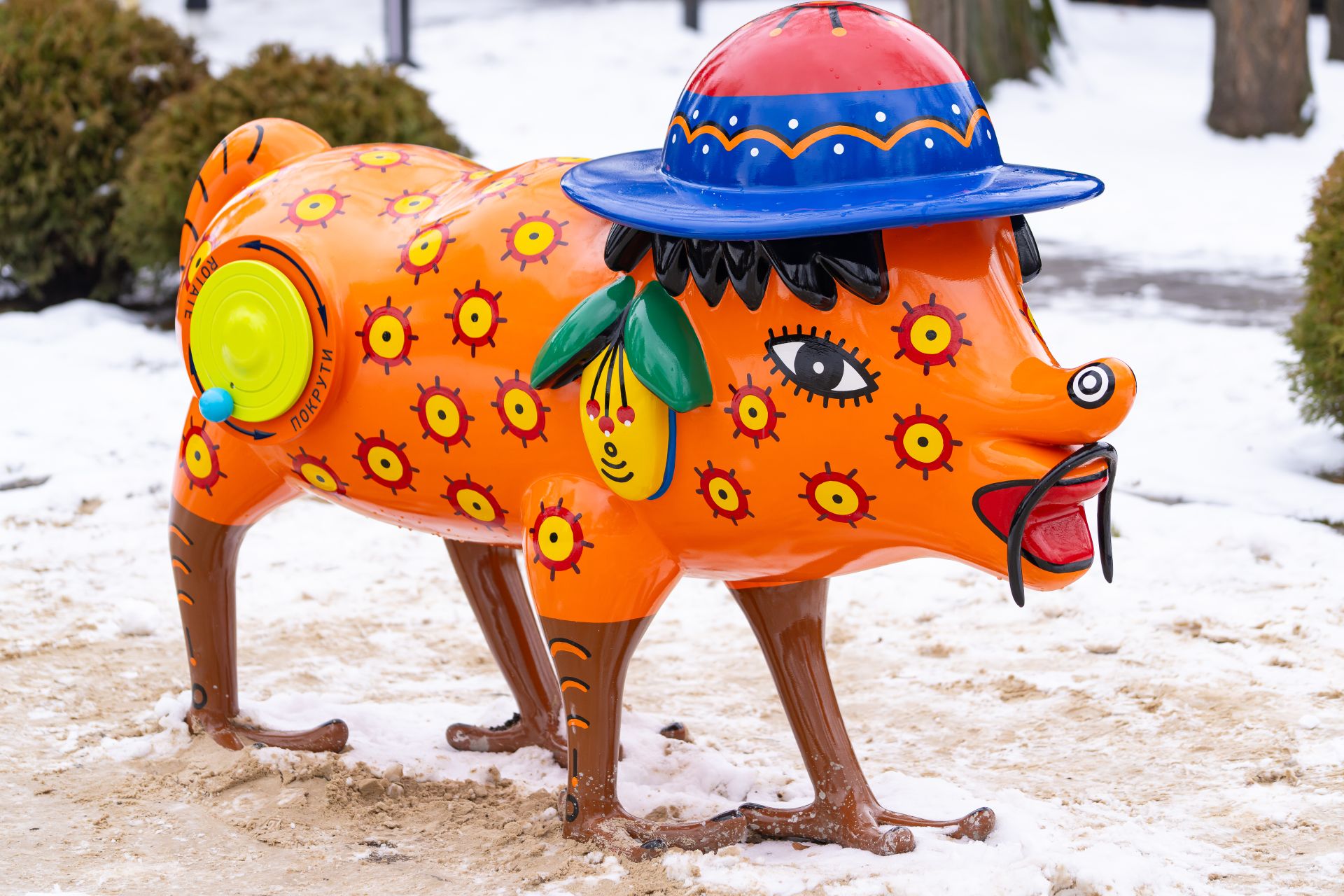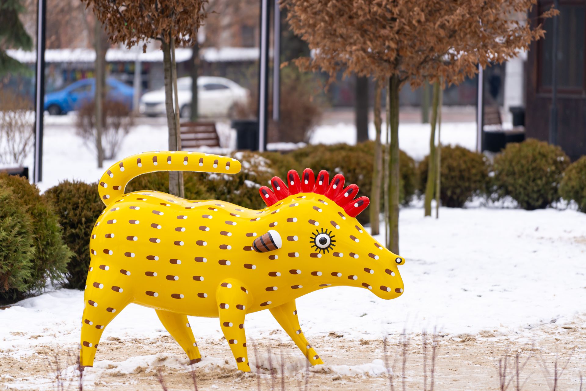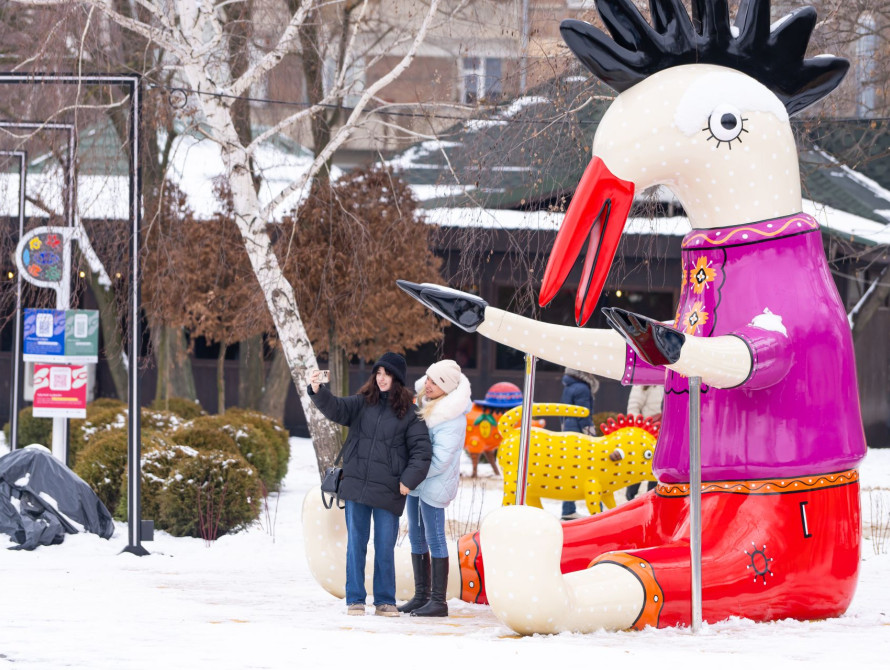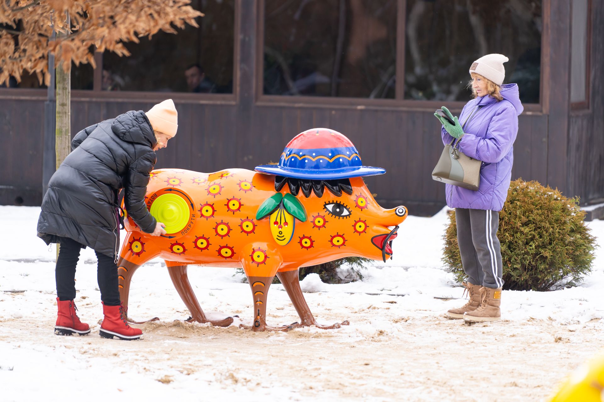Узимку локація виглядає по-особливому: яскраві інтерактивні скульптури тварин контрастують із білим снігом і створюють казкову атмосферу.