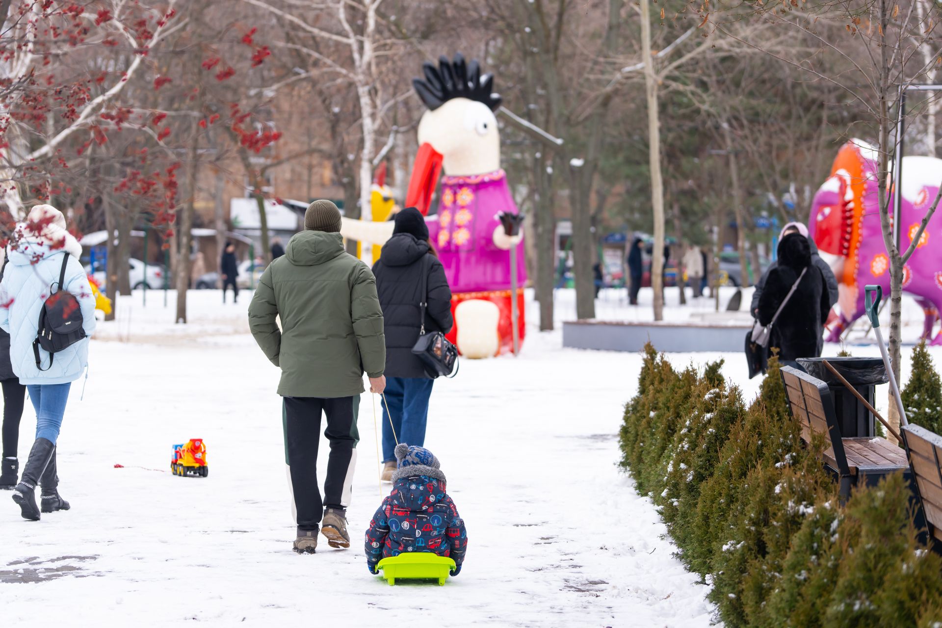 Фотограф Сергій Лічкатий зафіксував, як запоріжці прогулюються серед нових артоб’єктів навіть у морозну погоду.