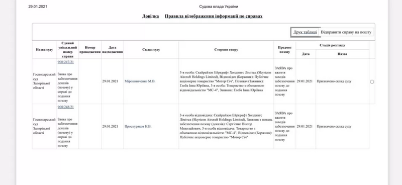 Даже после вчерашнего введении украинских санкций в отношении ключевого акционера "Мотор Сич" компании Skyrizon, люди экс-владельца запорожского завода продолжают нести в суды иски, направленные на срыв собрания акционеров. Так, 29 января на сайте запорожского хозяйственного суда появилась информация о распределении между судьями еще двух идентичных исков.
