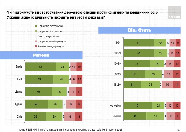 Согласно данным опроса группы "Рейтинг" 49% граждан Украины поддерживают такое решение Гаранта. При этом 41% населения выступает против (голосовали люди возрастом от 18 лет во всех областях, кроме временно оккупированных территорий Крыма и Донбасса).