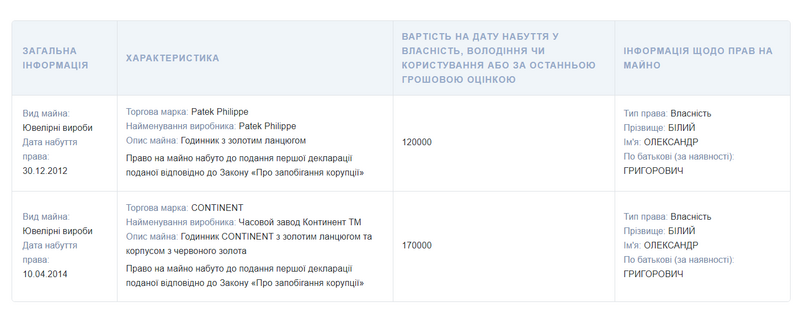 12 марта на сайте деклараций Александр Белый внес изменения. Так, у него появился новый автомобиль 2016 года выпуска CADILLAC ESCALADE за 1 420 000 гривен.