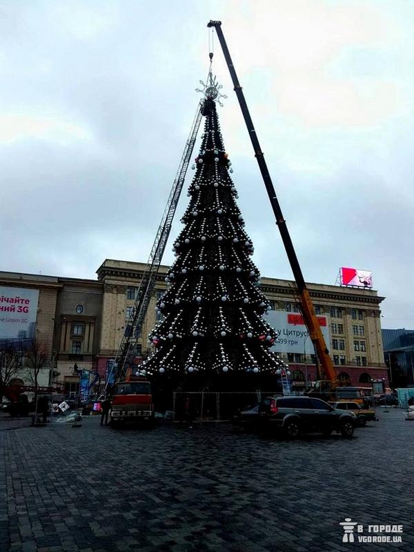 Сейчас в соцсети вид главной елки столицы взывает насмешки и остроты. Елку с западной Украины привезли слека в разобранном состоянии. Оторванные ветки обещают прикрепить обратно к дереву.