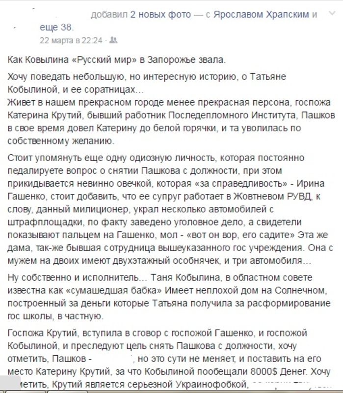 В Запорожье экс-депутат "УКРОПа" обвинила лидера фракции в финансовых махинациях. Татьяна Ковылина, недавно изгнанная из фракции "УКРОП", начала мстить своим обидчикам. Ковылина поделилась некоторыми темными делами, решаемыми руководителем фракции Ярославом Гришиным.