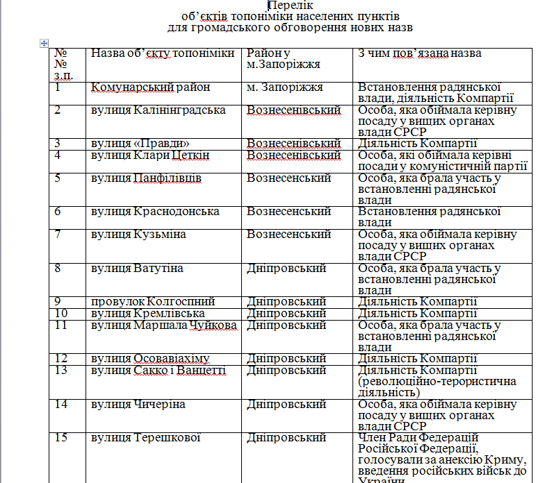 Областная власть требует переименовать в Запорожье еще 50 улиц и 1 район. В частности, не дает покоя Коммунарский район и улицы, названные в честь всех, кто имел хоть какое-то отношение к деятельности ком партии.