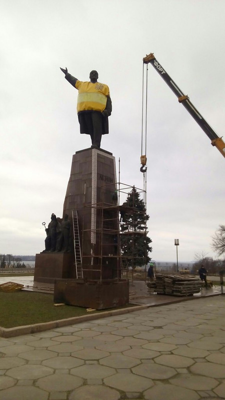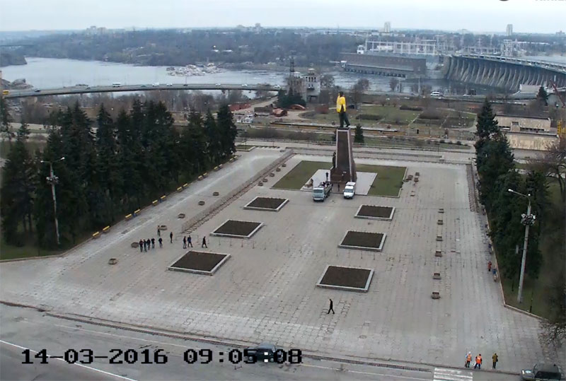 В 9.00 на пл. Запорожскую (Ленина) прибыли грузовики, которые расположились аккурат у подножия памятника. Так Запорожье начало подготовку к сносу памятника Ленину. Из авто вышли рабочие, которые начали проводить подготовительные работы.