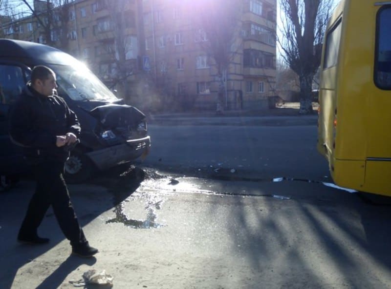 В Запорожье произошло очередной ДТП с маршруткой. На этот раз, участниками аварии были маршрутки с пассажирами. По ул. Рельефной произошло столкновение автобуса Богдан и микроавтобуса Мерседес Бенц. Пострадавших в ходе аварии нет. Однако, по словам очевидцев, пассажиры Мерседеса получили ушибы носа и губ.